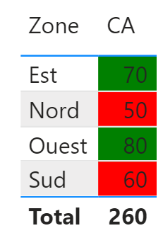 Voici comment afficher un arrière plan rouge quand un montant est différent de 0 :